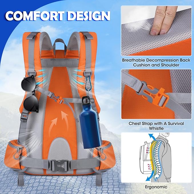 - 【High-Quality & Durable】Hiking backpack is made of high quality tear-resistant and water-resistant nylon fabric with SBS smooth zipper. Plus, we also give away a rain cover with a reflective logo. It is putted in the little pocket under the backpack. So it is no doubt that all your things will keep dry during rain. Just take this outdoor backpack,no matter the weather.