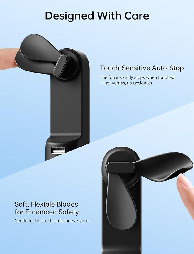 - A Palm-sized Backup Charger: Designed with a pocket size, this portable fan easily fits into any bag for on-the-go convenience; Doubling as a backup power bank, it keeps your devices charged when needed, making it your travel and summer essentials