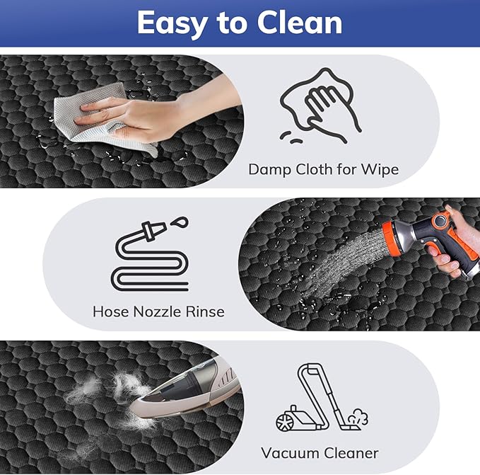 - Effortless Cleaning: This truck back seat cover for dogs is crafted from water-resistant fabric that shields your back seat from water, mud, and pet hair. Designed for full-size trucks and SUVs, it not only protects your vehicle's interior but also make your pet’s comfort and safety. The dog seat cover is easy to clean— just wipe it down with a damp cloth or vacuum away pet hair, making it a solution for busy pet owners