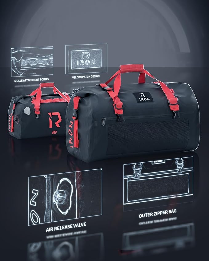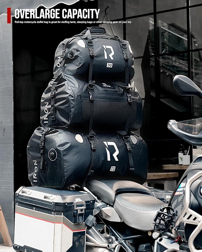 - 【Ample Capacity】This motorcycle tail bag comes in 30L, 50L, and 70L sizes, providing generous storage space. Internal pockets (30L fits a 15-inch tablet, while 50L and 70L fit a 29-inch tablet) and external mesh pockets offer extra storage options, helping you separate wet and dry items. Equipped with MOLLE attachment points for hanging keychains and water bottles, and an air valve to maximize capacity by releasing excess air.