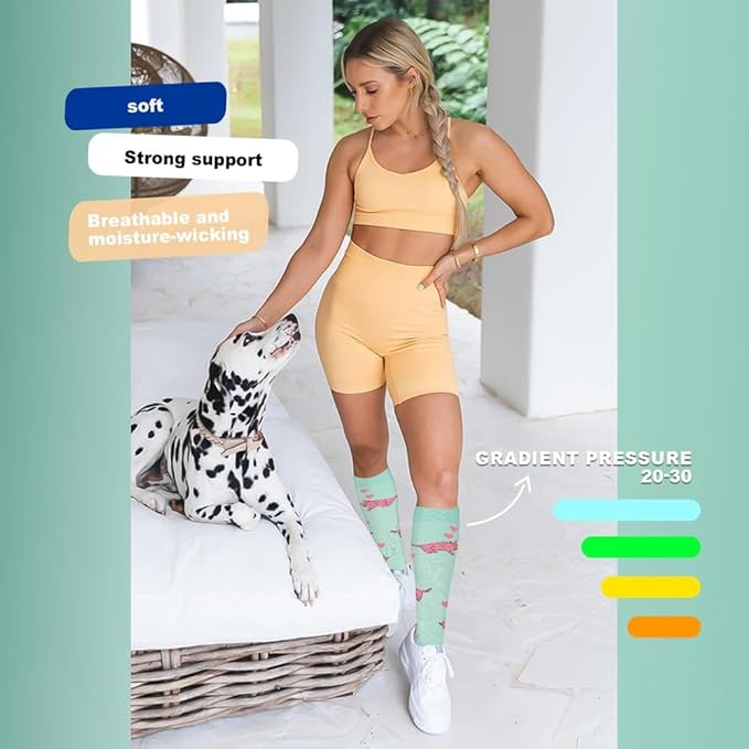 Graduated Compression Socks for Women&Men 20-30mmhg Knee High Socks Travel Hiking Running Stocking