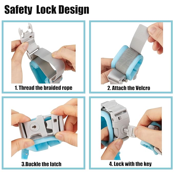 - Secure Lock Design: Our toddler safety wristband features a unique key lock design, with the key attached to the adult wristband. The double safety clasp prevents children from removing the wristbands themselves. Unlock your child easily when needed using the included key.