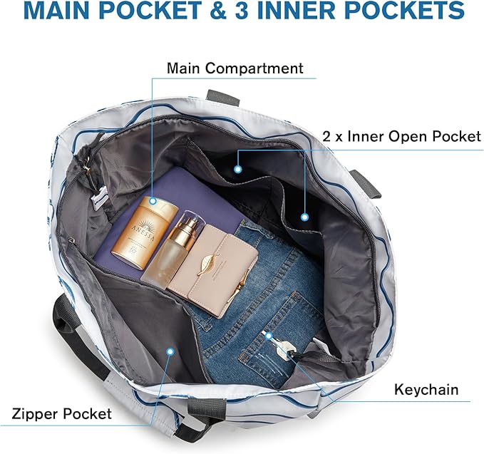 - 【Waterproof & Sandproof】Beach tote bags is made of durable, high-quality fabric that is both water and tear resistant, providing protection from sand and water. You can enjoy a day on the beach without worrying about your belongings getting wet or damaged.