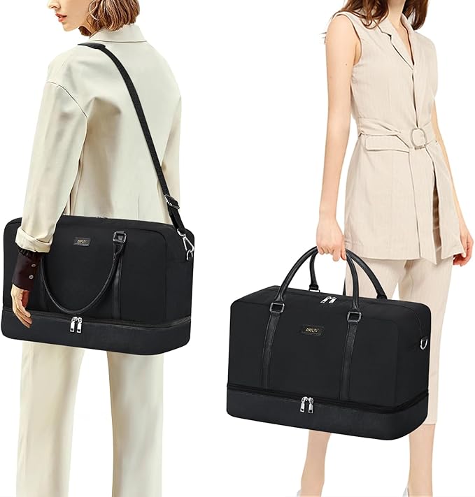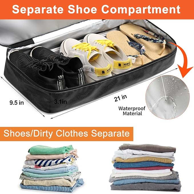 - The bottom is a waterproof separated compartment, you can take shoes, dirty clothes, wash bags or other things in it, keep them clean and tidy. And comes with a shoulder strap, you can carry travel bag on one shoulder or crossbody, releasing your hands and reducing pressure on hand.