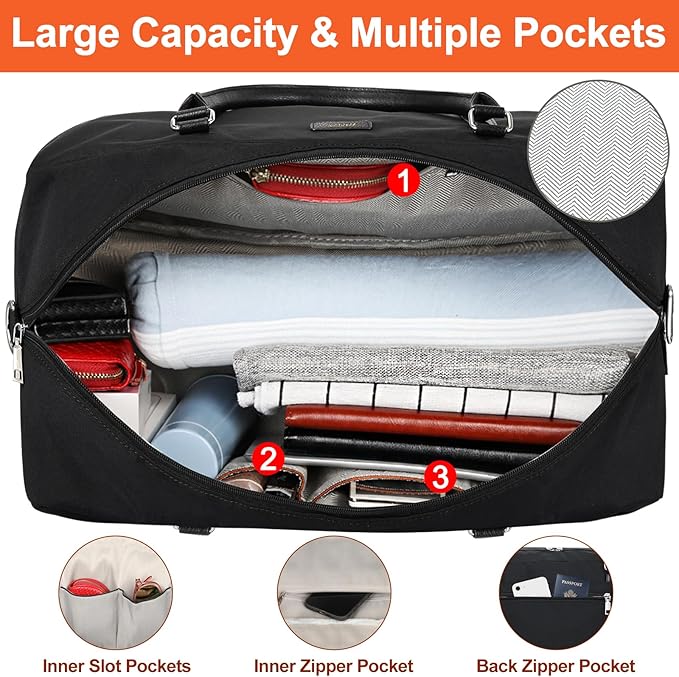 - IBFUN weekender bag is mainly made of high-quality Oxford fabric and PU leather. With enough space for your weekend trips, short-term business trips, and daily trips.