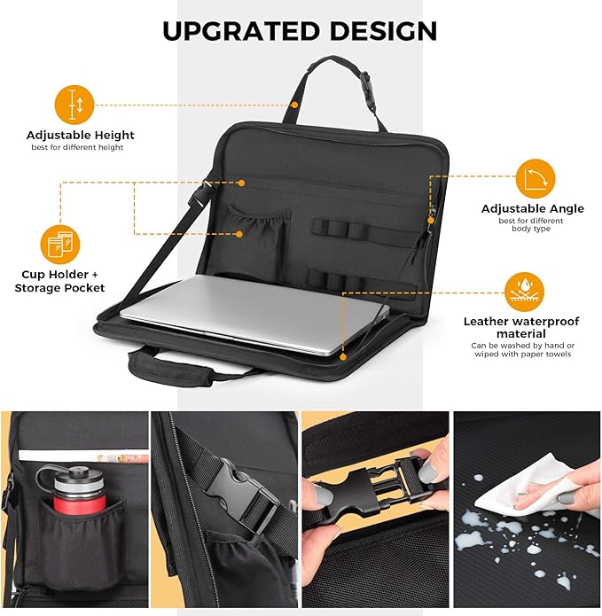 - 【EASY TO CLEAN】: Hard leather materials of the laptop stands for the car are used in the bottom of the bag for working/dining so that food sauces and residues accidentally stained can be quickly removed with a wet paper towel without leaving a peculiar smell