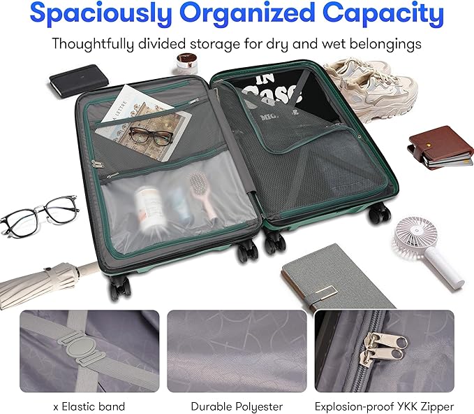 - 【Thoughtful Traveler-Focused Features】Elevate your travel experience with enhanced security and peace of mind through our built-in TSA-approved lock (default password: 0-0-0) and ensure your belongings stay secure while allowing airport security to inspect your luggage without damage