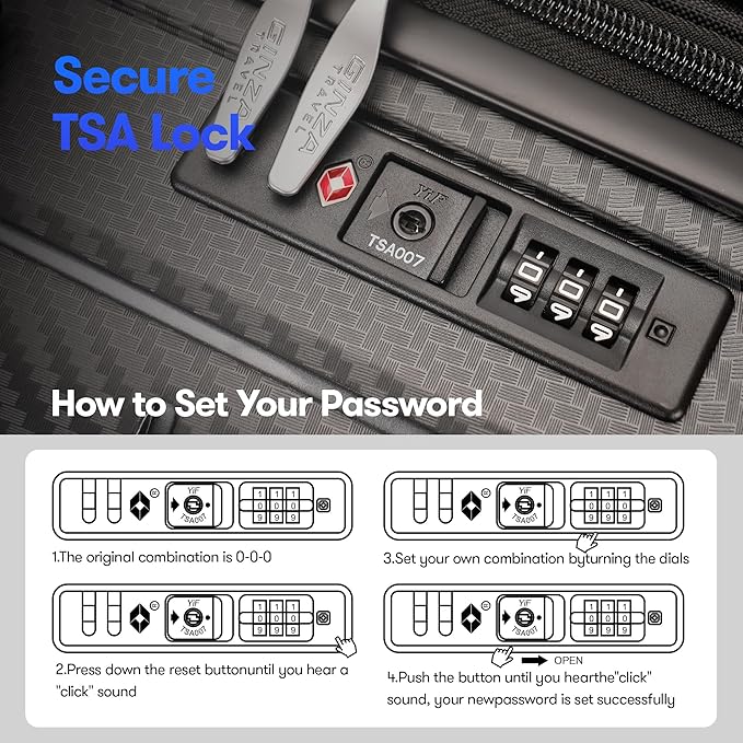 - 【Thoughtful Traveler-Focused Features】Elevate your travel experience with enhanced security and peace of mind through our built-in TSA-approved lock (default password: 0-0-0) and ensure your belongings stay secure while allowing airport security to inspect your luggage without damage