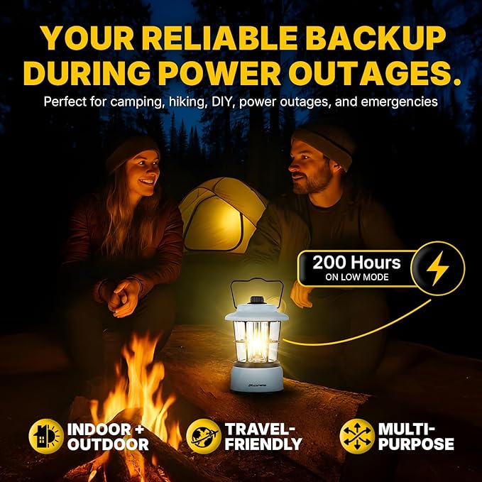 - Battery-Operated LED Lantern: Get up to 200 hours of warm, low mode illumination from this LED emergency lantern, ensuring you're never left in the dark during adventures or emergencies