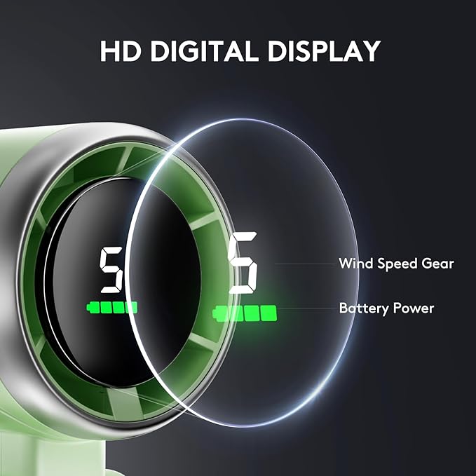 - 【LED Digital Display & Power Reminder】- Handheld Turbo Fan is equipped with a HD digital display screen, which can show the real-time gear and remaining battery power. Can remind you when you need to charge the fan, Make sure you have a cooling companion on every trip.