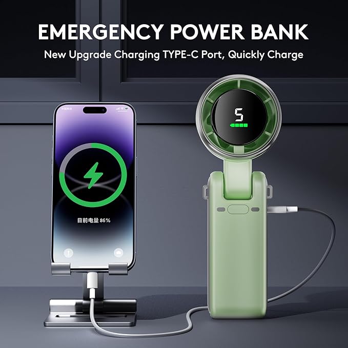 - 【5-Speed Adjustable, Super Long Standby】- Portable handheld small pocket fan adopts a upgraded 5 gear turbo wind for potent cooling. Adjust appropriate fan speed by pressing the power button repeatedly. Handheld fan with built-in 5000 mAh large-capacity battery and Type C charging port, fully charged in only 3 hours. You can control the airflow from natural, slow, medium, fast and super fast according to different needs.