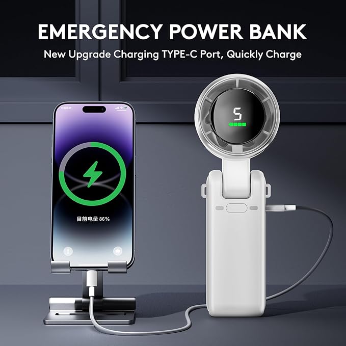 - 【LED Digital Display & Power Reminder】- Handheld Turbo Fan is equipped with a HD digital display screen, which can show the real-time gear and remaining battery power. Can remind you when you need to charge the fan, Make sure you have a cooling companion on every trip.