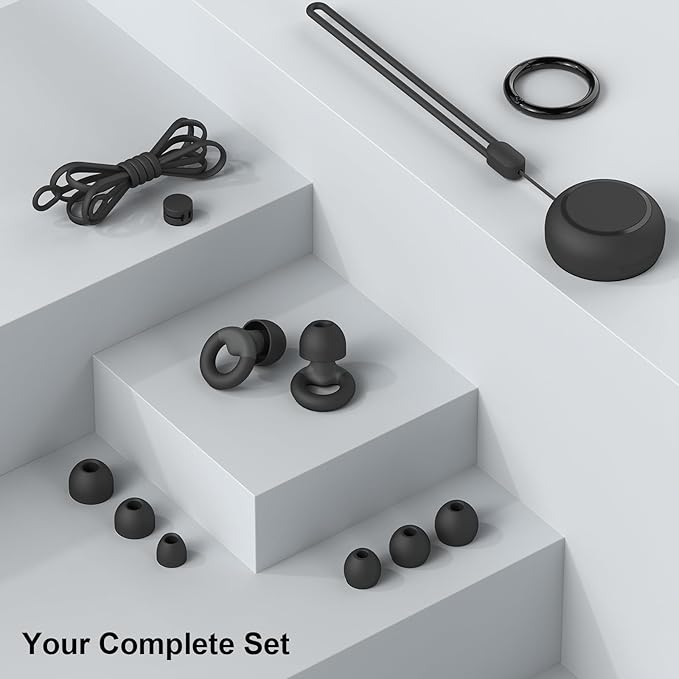 - What you get: 1 pair of Earplugs, 7 pairs of silicone ear tips,1 piece black carrying plastic box & rope, 1 piece lanyard, 1 piece rope buckle and 1 round key-chain. Hope that Our Earplugs can bring you quiet using experience on your loud sound life.