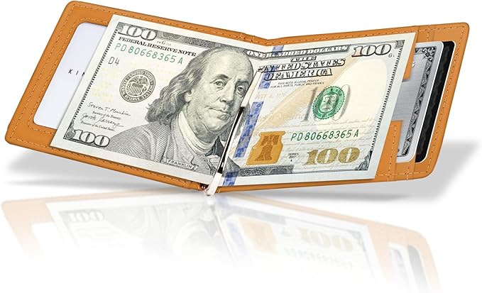 Kings Loot Money Clip Slim Minimalist Wallet for Men – RFID Blocking Leather Design with Money Clip – Front Pocket Bifold Holds 12 Cards – Stylish & Compact Wallets (Cognac)