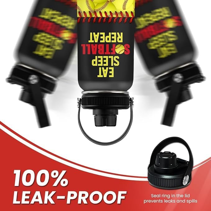 Softball Gift Water Bottle - 32oz Insulated Stainless Steel Sport Bottle
