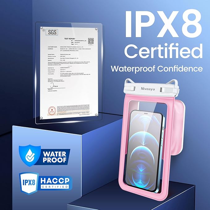 - 【SGS Certified and IPX8 Waterproof Rating】- 100ft/30m IPX8 certified professional floating waterproof phone bag is perfect for swimming pools, beaches, kayaking, fishing, surfing, sailing, skiing, boating, snorkeling, tubing, rafting, showers, saunas, water parks in Hawaii, the Caribbean and more, and also for storing your ID and cell phone, 100% waterproof, one of the best cruise, vacation and travel essentials/accessories!