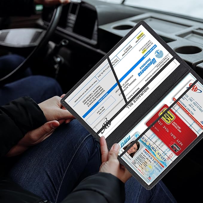 - 👁️Quick Accessible: Inside the car insurance and registration card holder, the clear inner material makes you easy to find documents when you open it up, you can see exactly what they are and quickly show them when asked, even no need to take the stuff out.