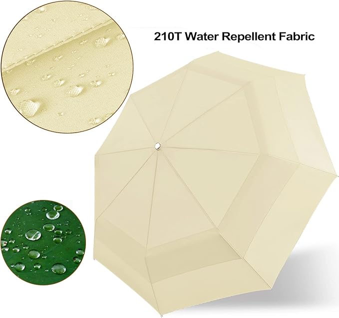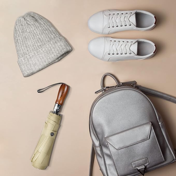- Waterproof and Fabric and Luxury Real Wooden Handle: This umbrella is made of 210T fabric with a specialized Dupont Teflon coating, making it waterproof and fast-drying. Also, the ergonomic wood handle with finger-notches makes it comfortable to hold