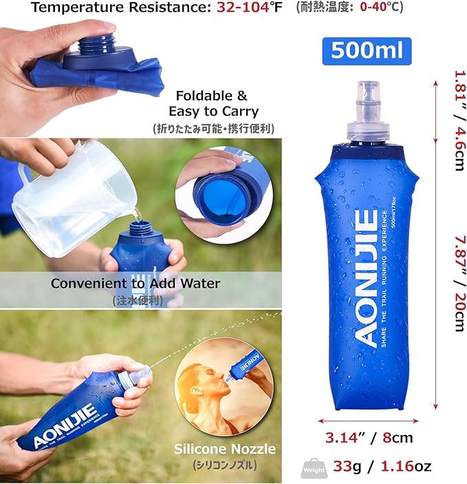 - Color : #01 Black - Vest with 500ml Soft Flask