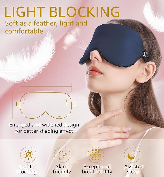 Luxury Pure Silk Sleep Mask | 100% Natural Mulberry Silk | Double-Sided Softness | Adjustable Strap & Full Light Blocking | Perfect for Travel, Office Naps & Nighttime Sleep (Navy Blue)