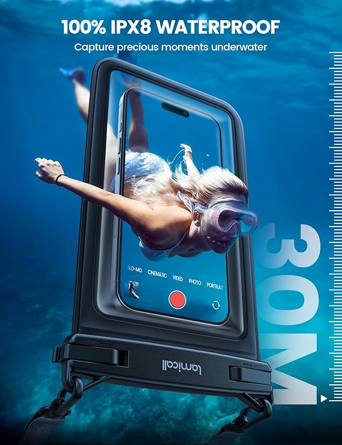 - 7.5" Wide Compatibility : Lamicall waterproof phone case is suitable for mobile phones up to 7.5 inches. It is applicable to most smartphones, such as iPhone iPhone 17, iPhone 17 Pro, iPhone 17 Pro Max, iPhone 17 Air 16/15/14 Pro Max/Pro/Plus, iPhone 13/12 Pro Max/Pro/Mini, iPhone 11 Pro/Pro Max, Xs, Xs Max, XR, X, 8, 7, 7 Plus, Galaxy S25, S24, S23 Ultra, S22+ S21+ S20 10+S10+0 S9+ S8 S8+ S7, ect.