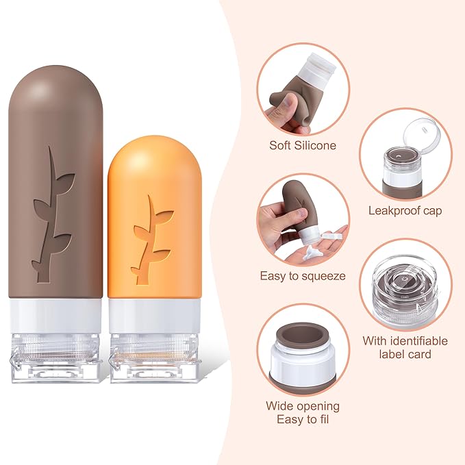 - Tsa Approved Leak Proof Travel Toiletries Bottles: The silicone bottles are designed with 3-layer leak-proof with a sturdy flip-top lid and a drip-free valve to protect your bottle from spills, leaks or drips during transport, prevent your expensive cosmetics from leaking during travel, with our unique leak-proof design