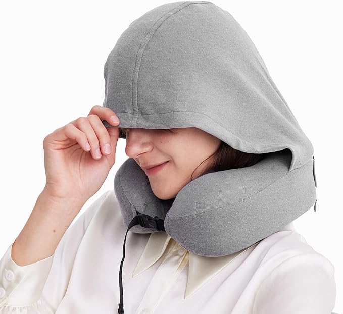 Privacy-Friendly Hooded Travel Pillow for Kids & Adults, Sensory-Friendly, Memory Foam Neck Support for Airplane, Car & Train, Breathable Fabric, Portable, Ultimate Comfort