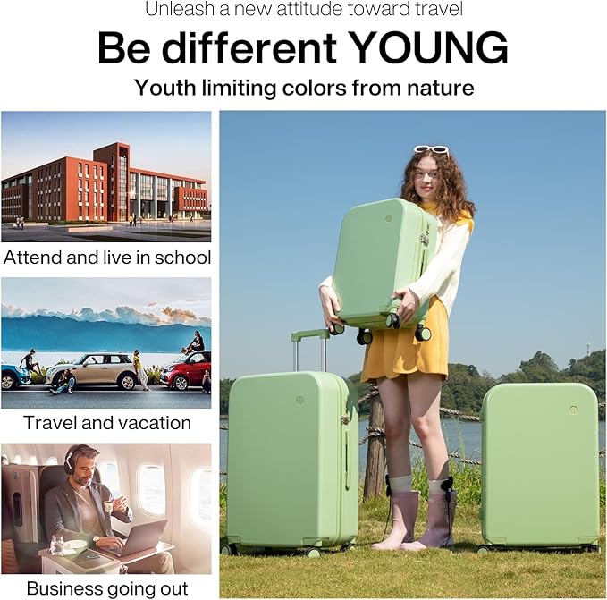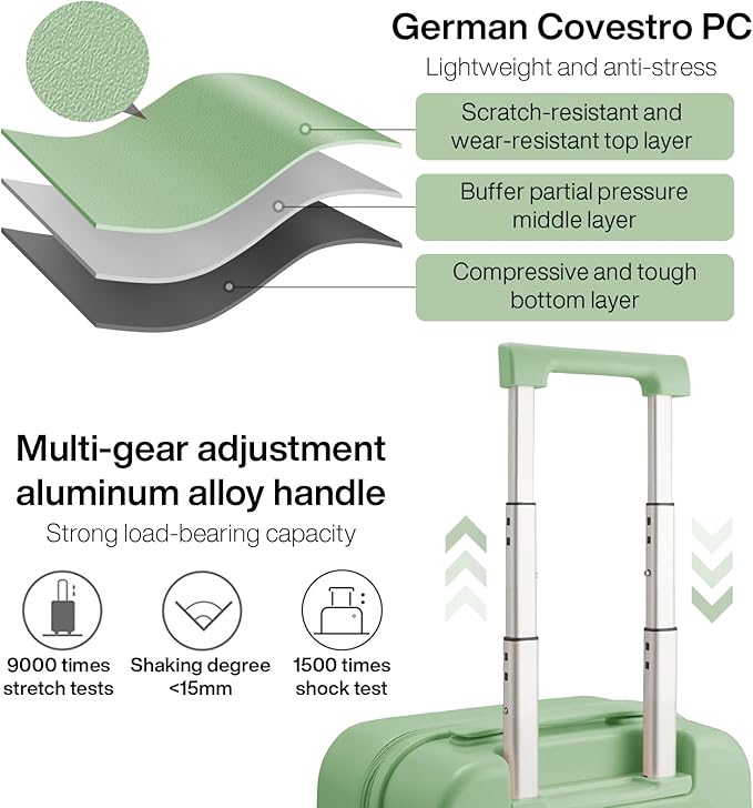 - Simple & Fashionable Suitcase, Combined with THREE-LAYER Bayer PC material which is called “Soft Steel” for hardshell, which make the luggage durable, wearable and lighter than ABS or ABS+PC suitcases. The color of this series hardside rolling suitcase is fashionable and bright and available in 16in 20in 22in 24in 26in 28in, please check our size chart/description carefully before placing an order and choose the right one for the upcoming travel.