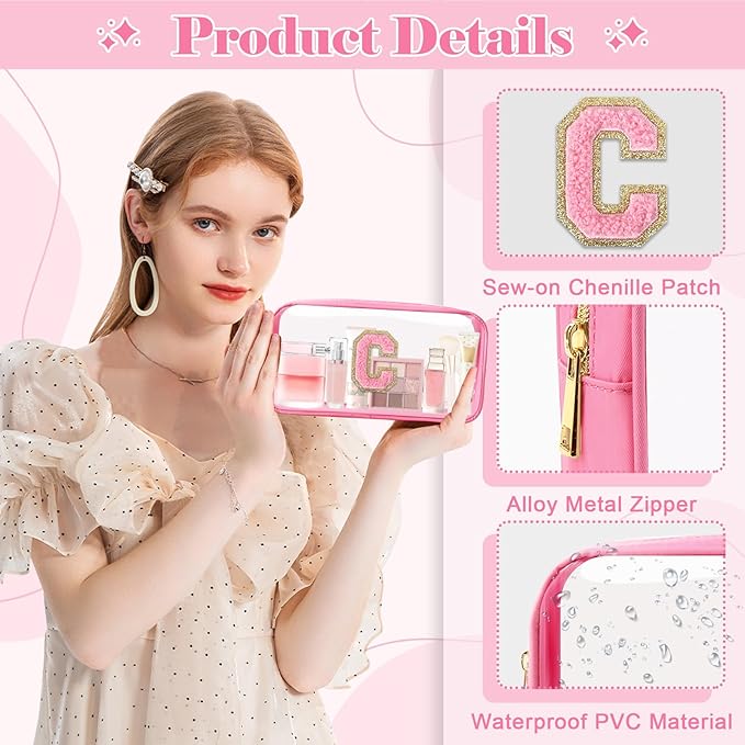 • 【Chenille Letter Patch Bag】Preppy initial makeup bag with professionally sewn chenille letter patches. You don't have to worry about them falling off. With its waterproof nylon & PVC design and unique glitter A-Z initials, it will surely stand out from all your makeup bags, brighten your mood and highlight your personality.