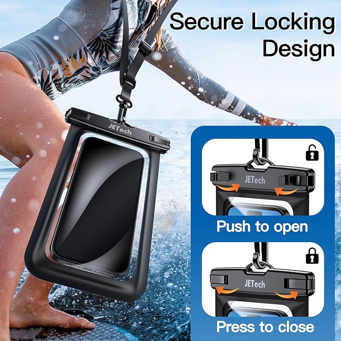 JETech Waterproof Phone Pouch, 2 Pack Water Proof Case for iPhone 17 16e 16 15 14 Air Pro Max Plus, Galaxy S25 S24 Ultra, Pixel 10 Series and Others up to 7.2 Inch, IPX8 Dry Bag (Black+Black)