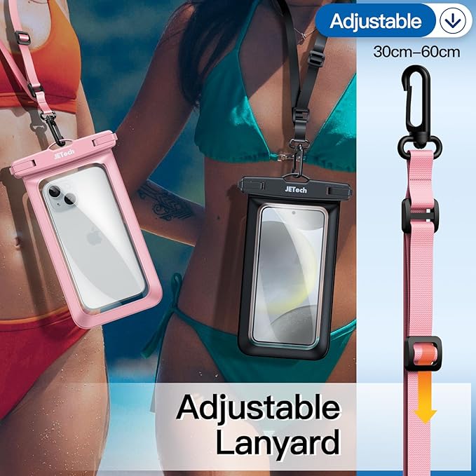 JETech Waterproof Phone Pouch, 2 Pack Water Proof Case for iPhone 17 16e 16 15 14 Air Pro Max Plus, Galaxy S25 S24 Ultra, Pixel 10 Series and Others up to 7.2 Inch, IPX8 Dry Bag (Black+Pink)