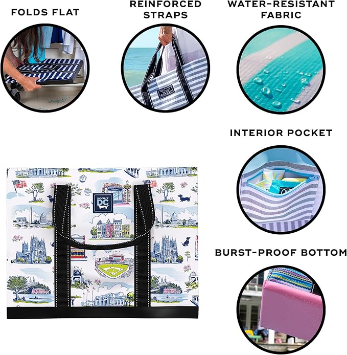 SCOUT Original Deano Tote Large - Durable Lightweight Open Top Beach, Pool & Lake Bag, Inside Zip Pocket, Folds Flat