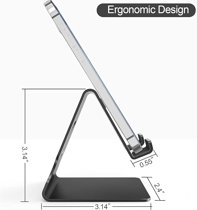 - [Universal Compatibility]: This phone stand works with all 4-10" Smartphones Tablets and e-readers, such as iPhone 16, iPhone 16 Pro, iPhone 16 Pro Max, iPhone 16 Plus, iPhone 15, iPhone 15 Pro, iPhone 15 Pro Max, iPhone 15 Plus iPhone 14, iPhone 14 Plus, iPhone 14 pro, iPhone 14 pro max,13 Mini, iPhone 13, iPhone 13 Pro, iPhone 13 Pro Max, 12, 11 Pro XS Max XR X 8 7 6 6S Plus, Galaxy S21 Ultra, S20, S10, S9, S9 Plus etc. (Note: max support 0.55" thick device)