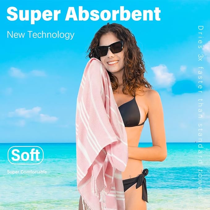 - LIGHTWEIGHT AND SAND FREE:The turkish beach towels make your holiday relaxing and enjoyable.This beach towel is light and breathable.And it is compact and easy to fold,which is very space saving.Pack it in a bag and go anytime.Besides,when you're done playing at the beach,just give it a shake,leave the sands where they belong to