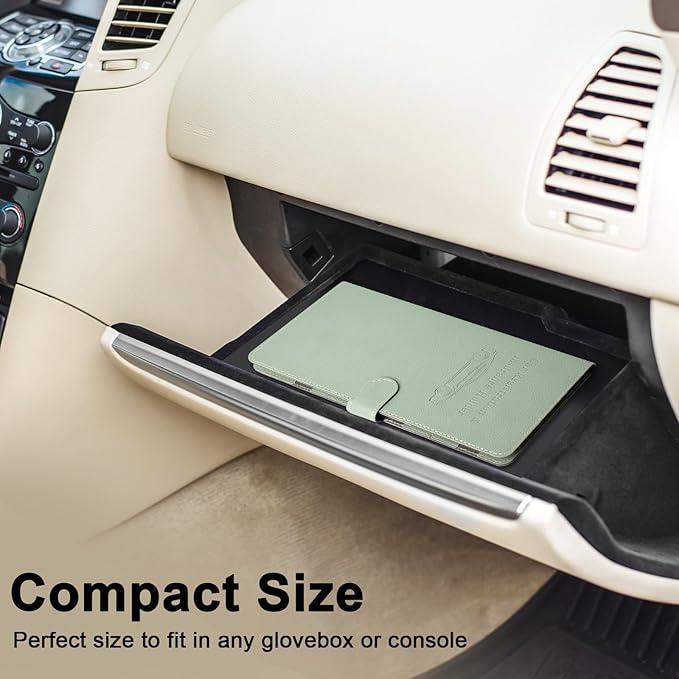 RSAquar Car Registration and Insurance Holder, Vehicle Glove Box Organizer Cool Car Accessories, Car Document Holder for Cards, Driver License & Essential Document, JD-Green