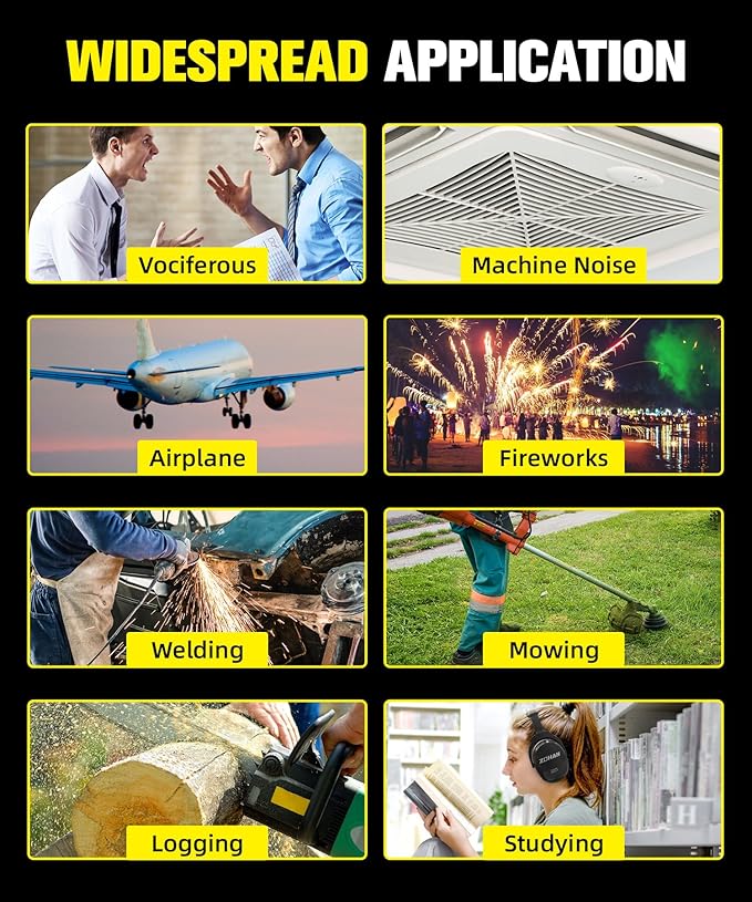 - HIGH NOISE CANCELING EAR MUFFS: With a noise reduction rating of up to 28dB(SNR 34dB) which meets the USA & EUR standards. Protect your hearing from hazardous sound levels. Perfect for mowing/fireworks/working/sports events/autism/airplanes and any noise environments