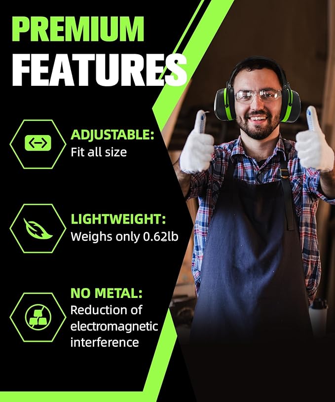 - LIGHTWEIGHT&COMFORTABLE: The ear protection earmuff is designed to be lightweight and slim. The ear cups are wide and the ear pads are extremely soft yet durable, they can fit snugly around your ears with no pressure
