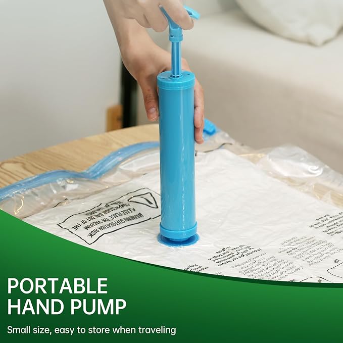 - Portable Hand Pump:It does not take up space in the suitcase, so you can put your travel clothes in a vacuum bag, gently press the air with your hands, and then use a hand pump to exhaust the remaining air, which saves time and effort