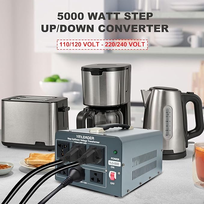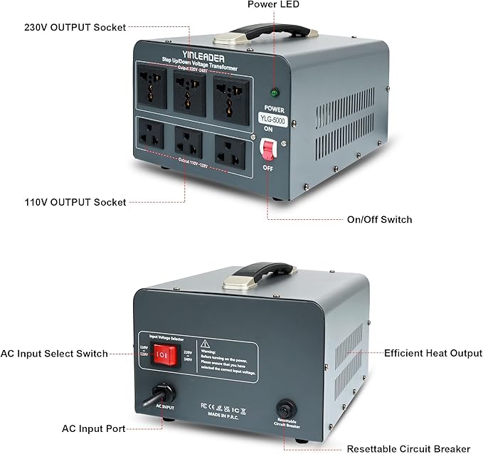 Yinleader 5000 Step Up/Down Transformer Converter 110/120 Volt - 220/240 Volt w/US Power Cord,Circuit Breaker Protection (Grey)