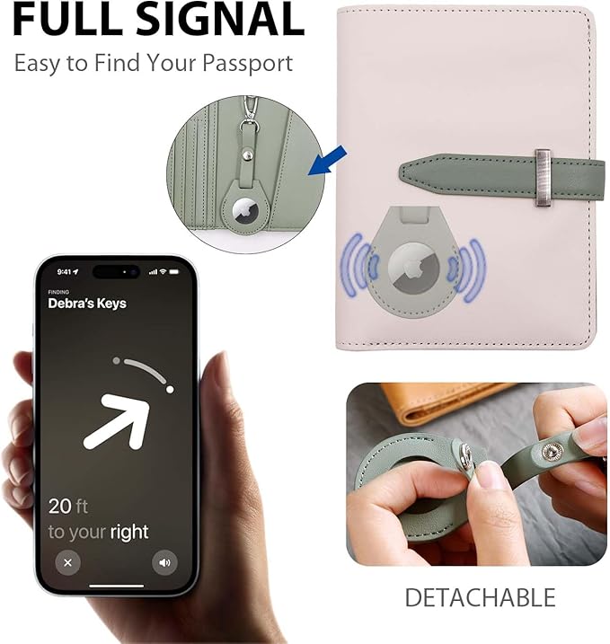 - AirTag Passport Holder:The airtag passport holder has a built-in AirTag holder that keeps your AirTag securely in place. You can integrate AirTag into your passport holder to easily find your passport using your phone (Please note that AirTag is not included in the product)