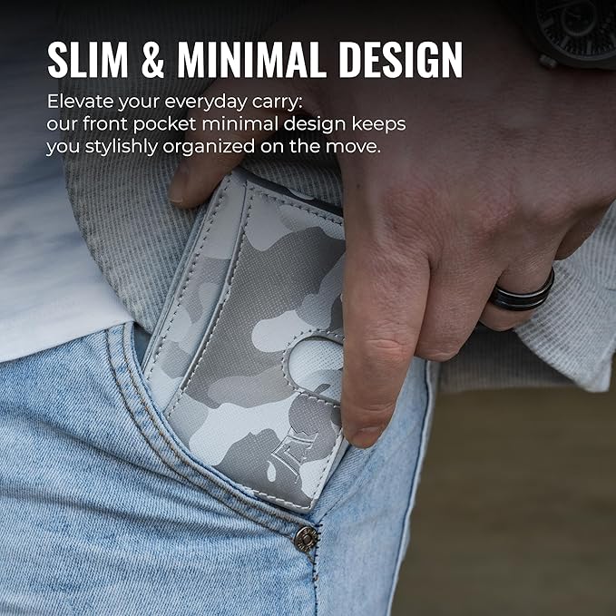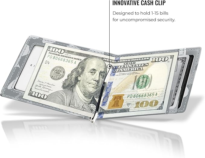 Kings Loot Money Clip Slim Minimalist Wallet for Men – RFID Blocking Leather Design with Money Clip – Front Pocket Bifold Holds 12 Cards – Stylish & Compact Wallets (Camo White)