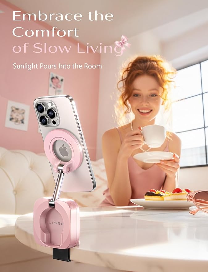 LISEN Airplane Phone Holder Travel Essentials for Women Long Flight Essentials Must Haves Handsfree for MagSafe Phone Stand Beach Vacation Cruise Essentials 2025 for iPhone 16 Pink