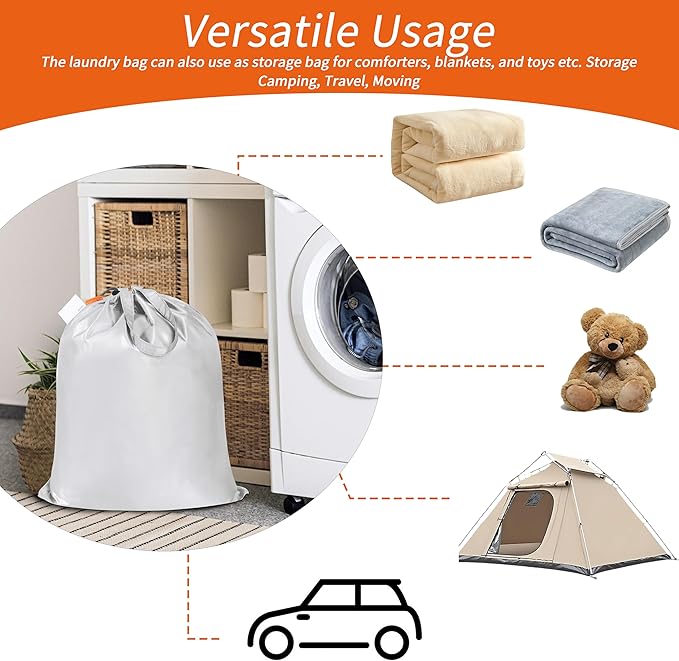 - 【Drawstring Closure and Easy to Carry Handles】The laundry bag has a locking drawstring closure preventing spill of personal items when taking out for laundries or travelling. Reinforced handles to easy to carry up to 50 pounds.