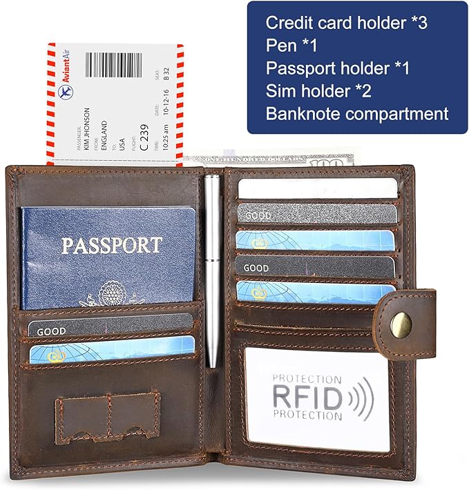- RFID Protection: Equipped with advanced RFID blocking technology, this passport holder effectively prevents identity theft and protects the information on your credit cards and ID cards with chips. Enjoy peace of mind while traveling and in daily life.