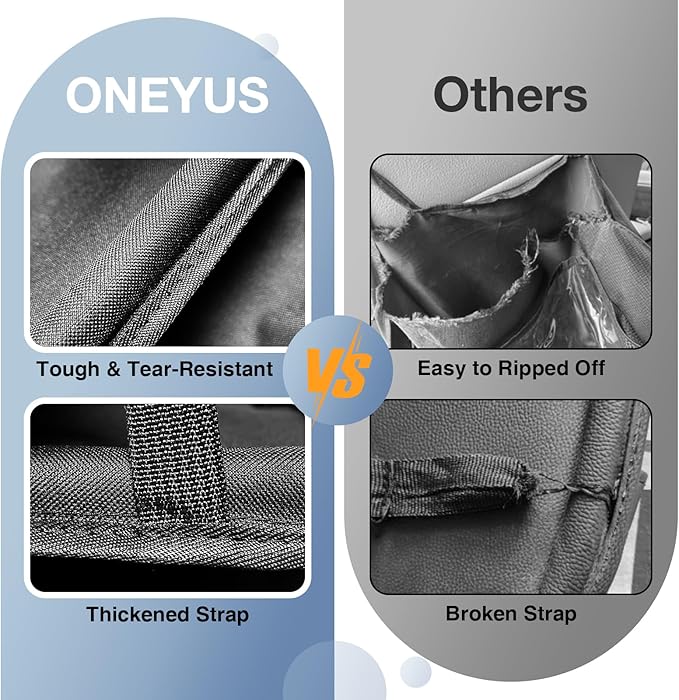 - Durable 600D Oxford Fabric: Say goodbye to the cheap material which is easy to ripped off. Our upgrade high-density Oxford car seat organizer backseat boasts tear-resistent and the reinforced stitching ensures longevity to reduce the frequency of replacement products. The watrproof and breathable material without any odour is safe for children, just requires a quick wipe down to clean back seat organizer for kids