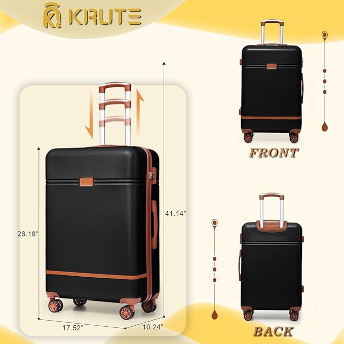 Krute Checked Luggage 24 inch Suitcases with Wheels TSA Approved PC+ABS Lightweight Hard Side Suitcase (BlackBrown)