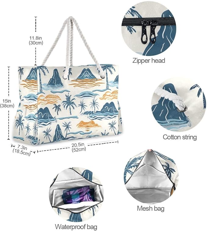 - RIP-STOP FABRIC & WATERPROOF: The beach bag is made of RIP-STOP canvas cloth which is ideal fabric for beach bags. It is Sturdy and Resistant to Rips and Water.The outer is also easy to clean: simply spray water/detergent and wipe for most stains.