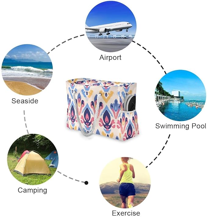 - RIP-STOP FABRIC & WATERPROOF: The beach bag is made of RIP-STOP canvas cloth which is ideal fabric for beach bags. It is Sturdy and Resistant to Rips and Water.The outer is also easy to clean: simply spray water/detergent and wipe for most stains.
