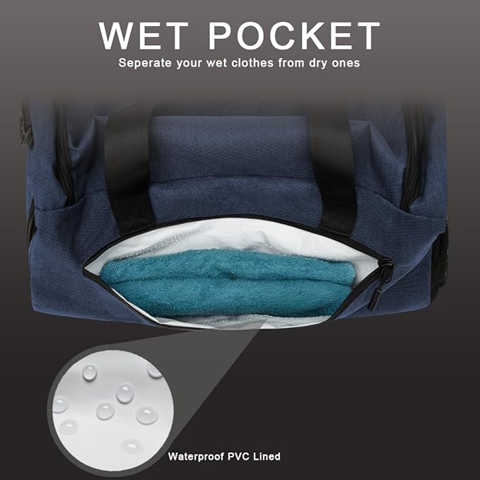 - DRY & WET SEPARATION: The gym bag for men is well thought out with a dry & wet compartment separation. It uses waterproof PVC lined with smooth zipper closure, good for storing wet clothes and swimsuits. Workout will be a breeze with this gym bag.