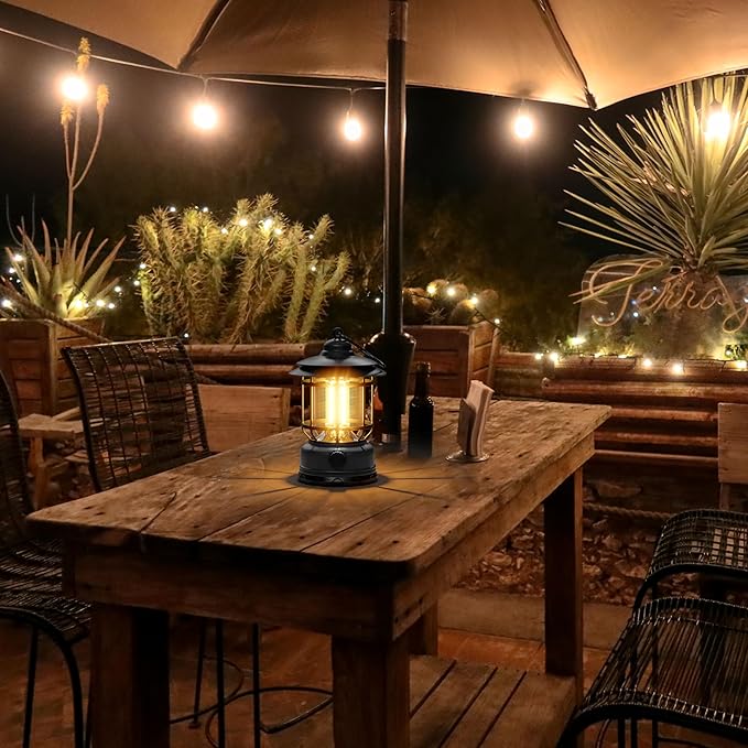 - Stepless dimming: This vintage lanterns for camping has a stepless dimming rotary switch. It can be easily adjusted by turning. To set the brightness to match your need level. The led camping lantern create a warm and comfortable atmosphere for your house, and make a great addition to your outdoor decoration, best choice for garden and party decoration